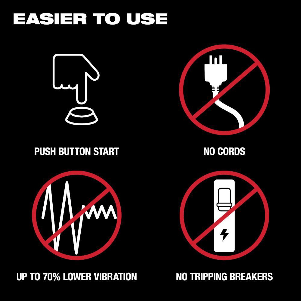 The MX FUEL™ breaker delivers a faster, safer, easier concrete demolition experience by being the most productive with the lowest vibration, lightest weight, and breaking over 2 tons per charge. The MX FUEL™ breaker is the most productive with the lowest vibration on the market, designed for the professional user delivering ultimate power, durability, and productivity. The POWERSTATE™ brushless motor delivers 50 ft-lbs of impact energy that meets and exceeds that of corded competition. The MX FUEL™ REDLITHIUM™ XC406 battery pack delivers unparalleled run time that can break a 40 ft trench that is 1 ft wide and 6 in. thick on one charge. The MX FUEL™ breaker is lightest in class, making it easier to maneuver and transport throughout the jobsite. REDLINK Plus™ intelligence ensures maximum performance and protection from overload, over heating, and over discharge. It is compatible with all MX FUEL™ REDLITHIUM™ batteries, the hardest working most reliable power for equipment. The MX FUEL™ breaker is ONE-KEY™ compatible: track, manage and secure equipment from your mobile device or computer using the industry’s largest Bluetooth® community tracking network. If ever lost or stolen, prevent tampering with remote lockout capability.