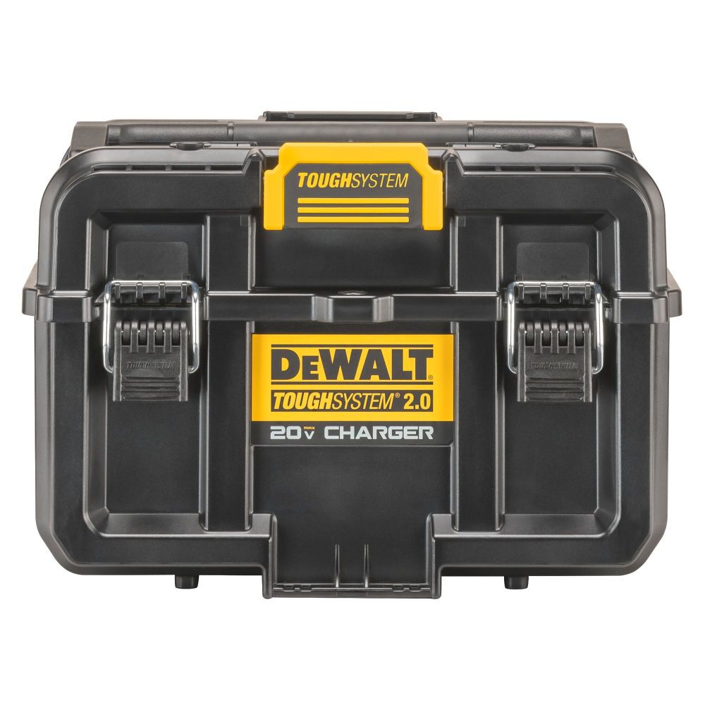 DEWALT TOUGHSYSTEM 2.0 20V Dual Port Charger. Dual Simultaneous-Charging: 20V max batteries including Flexvolt. Optimal storage space for batteries & tools. 2X USB charging ports (internal + external). IP55 Protection against dust & water. Compatible with TOUGHSYSTEM 2.0 ™ modules. Convenient carrying with coated handle. Batteries sold separately.