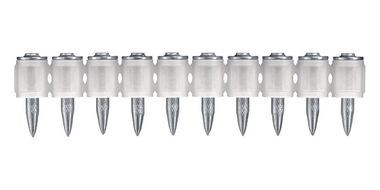 The Hilti X-U universal knurled shank fastener is also a 0.157 In. shank fastener, designed to cover a wide range of application conditions in steel and concrete. With a fully knurled shank, the X-U fastener is particularly well-suited for steel applications. Galvanized nails for fastenings on concrete or steel. For fastening to concrete and steel. For fastening drywall track to concrete. For fastening wall ties. For fastening wood to concrete. For setting up formwork and safety barriers.