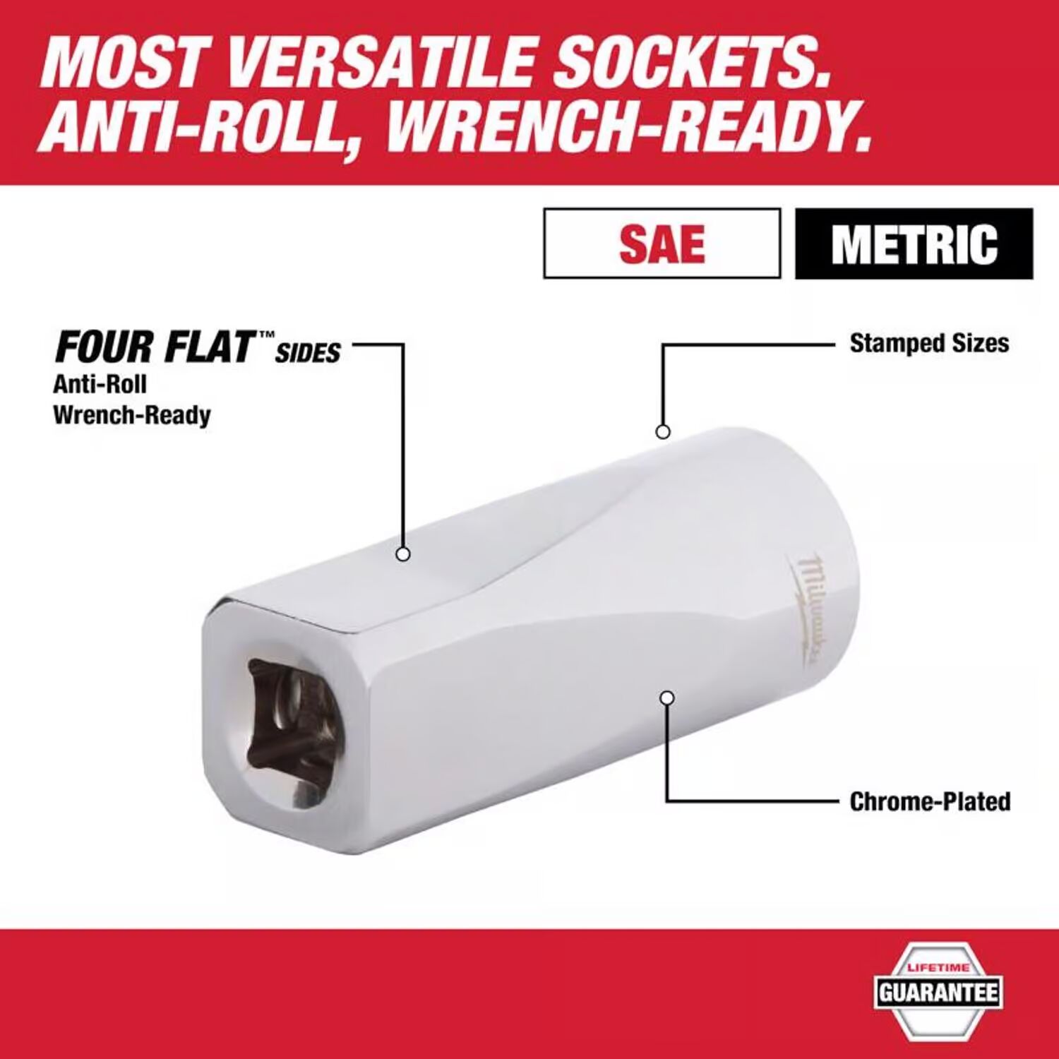 The Milwaukee SAE 50 piece 1/4 in. drive ratchet and socket set is designed from the ground up, offering our users the most versatile sockets that are anti-roll and wrench-ready. Its innovative four flat sides feature an anti-roll and wrench-ready design. The 90 tooth ratchet tool offers 4 deg. of arc swing and a slim profile design, allowing you to work in tighter and more confined spaces, be it under the hood of a car or in the middle of a remodel. The ratchet and socket kit comes with a removable inner tray which is perfectly designed to be stored long-term in a steel storage chest. The set comes with accessories included so that our users can get every job done, both in the garage and on the jobsite.