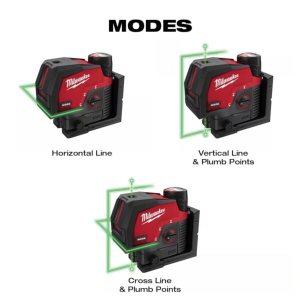 The Milwaukee M12 green ross line and plumb points laser provide all-day runtime and the best visibility in its class. Using the M12 Redlithium 3.0 CP battery, you get 15+ hours of continuous runtime for ultimate productivity. The high-intensity green laser offers you superior visibility up to 125 ft. for long-range applications. The vertical and horizontal lines make alignment and level applications easy for you, while the two plumb dots allow for quick transfers from floor to ceiling. The integrated magnetic bracket features micro-control and pivots on the plumb point for easy and fast alignment. The amplified rare earth magnets provide a strong hold and will not slide on steel studs.