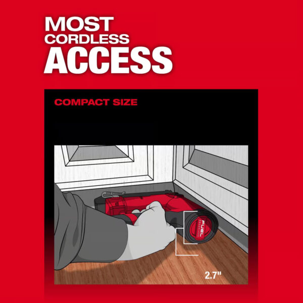 The MILWAUKEE M12 FUEL 18 Gauge Compact Bad Nailer delivers peak productivity at the jobsite, providing users with unmatched nailing performance and access to tight spaces with the compact, lightweight, ergonomic design. Leveraging a nitrogen air spring mechanism, this brad nailer enables user to sink 5/8 in to 1-1/2 in brad nails to the proper depth in both hard and soft materials while leaving clean, consistent nail holes. Because of the compact design, the M12 FUEL 18 Gauge Compact Brad Nailer provides over 700 nail fires on a single battery charge. For an additional run time, the M12 FUEL 18 Gauge Compact Brad Nailer is fully compatible with all Milwaukee M12 REDLITHIUM Batteries.Most Cordless AccessLightest Cordless Brad NailerPower to Nail Hardwoods5/8″ – 1-1/2″ Nail LengthsTool Free Depth AdjustmentTool Free Jam Clearing LatchSequential and Contact ActuationTip Storage On MagazineReversible Belt Hook