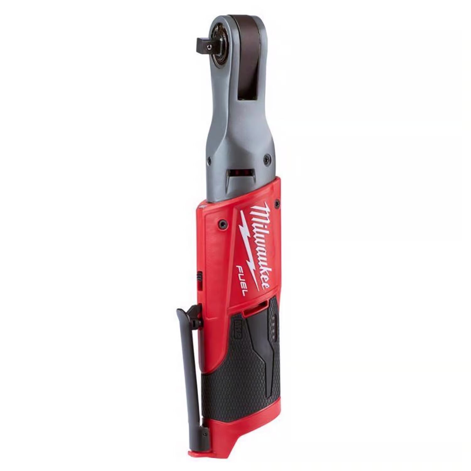 The Milwaukee M12 Fuel 3/8 in. Ratchet is the first cordless tool that provides both the torque and compact size to replace pneumatic ratchets in the industry. This cordless ratchet has up to 55ft.-lbs. of max torque and 200 rpms making it the ideal fastening solution for automotive mechanics, repair technicians and maintenance workers who demand maximum performance and convenient portability. The M12 battery powered ratchet has a low profile head and cordless design which allows users more access in tight spaces than competitive units. With the industry leading Fuel technology, a reinforced mechanism and investment cast steel yoke housing, this rechargeable ratchet can withstand daily jobsite wear and tear for years of reliable use. Milwaukees cordless ratchet has eliminated the constant maintenance of pneumatic ratchets and the nuisance of an air hose in the shop. The M12 Fuel Ratchet delivers the maximum portability and productivity for the professional user.