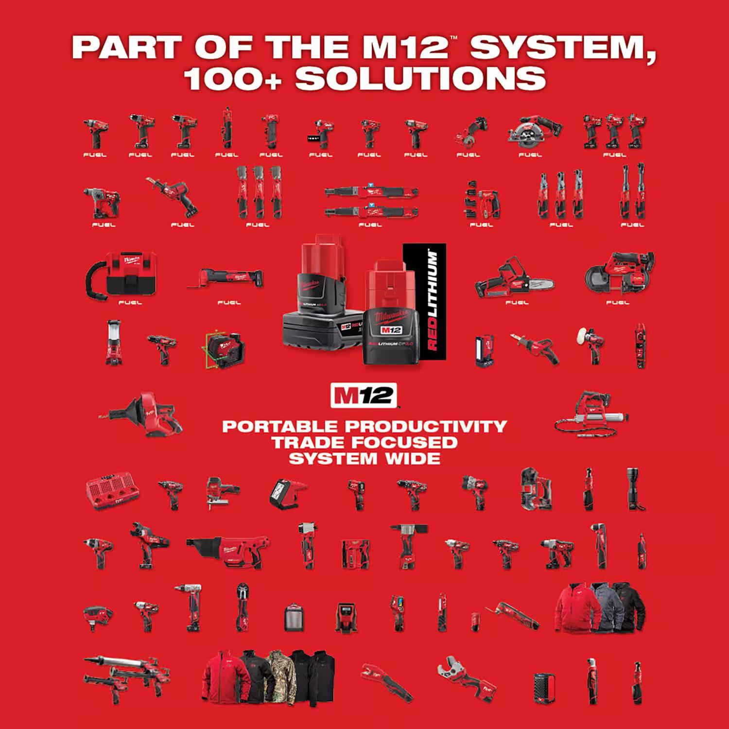 - M12 RedLithium battery packs delivers long life and run time with fade-free power