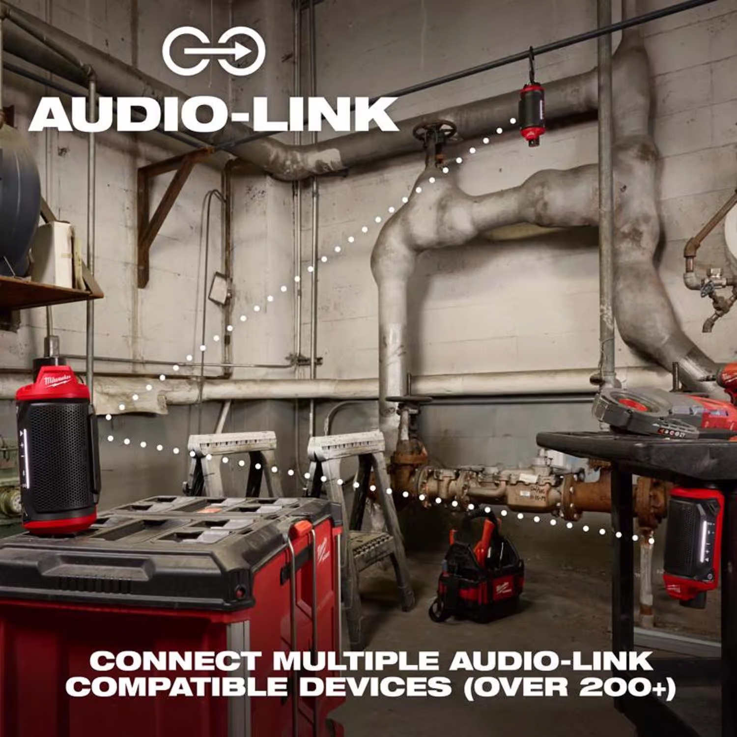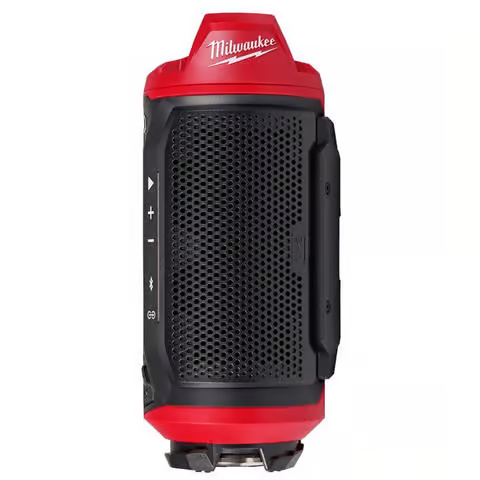 The Milwaukee M12 Bluetooth Jobsite Speaker w/ Packout Compatibility delivers Clear, Portable Sound and Jobsite Versatility. The 3.5 in. woofer and high-frequency tweeter deliver optimized sound for personal workspaces. Bluetooth 5.3 provides up to 200 ft. of range to keep you connected throughout the jobsite. Audio Link allows you to play music through multiple compatible Milwaukee devices (over 200+) creating a larger sound experience. The M12 Bluetooth Jobsite Speaker w/ Packout Compatibility provides up to 10 hours of runtime at 100 percent volume on the M12 Redlithium XC4.0 Battery. The built-in equalizer settings allow you to customize the bass and treble to your preferred sound. Featuring twist-to-lock Packout Connectivity, the speaker attaches to the top of Packout solutions for secure storage and transport throughout the jobsite. Additionally, the kitted puck, integrated nail hook, d-hook, and various listening orientations provide you with maximum Jobsite Versatility. This speaker withstands the most demanding jobsite environments with an IP64 rating. Charge up personal devices with USB-C 3.0A device charging wherever you go.Built to withstand tough job site environments with the durability expected from milwaukee productsIntegrates with milwaukee’s packout modular storage system, ensuring portability and secure attachmentProvides a wireless range for pairing with portable electronic devices