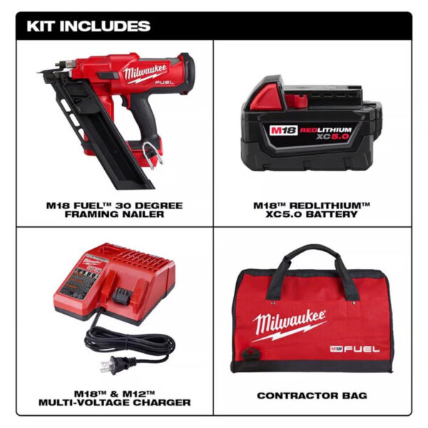 Milwaukee M18 FUEL 18 Volt Brushless 30 deg Framing Nailer Kit