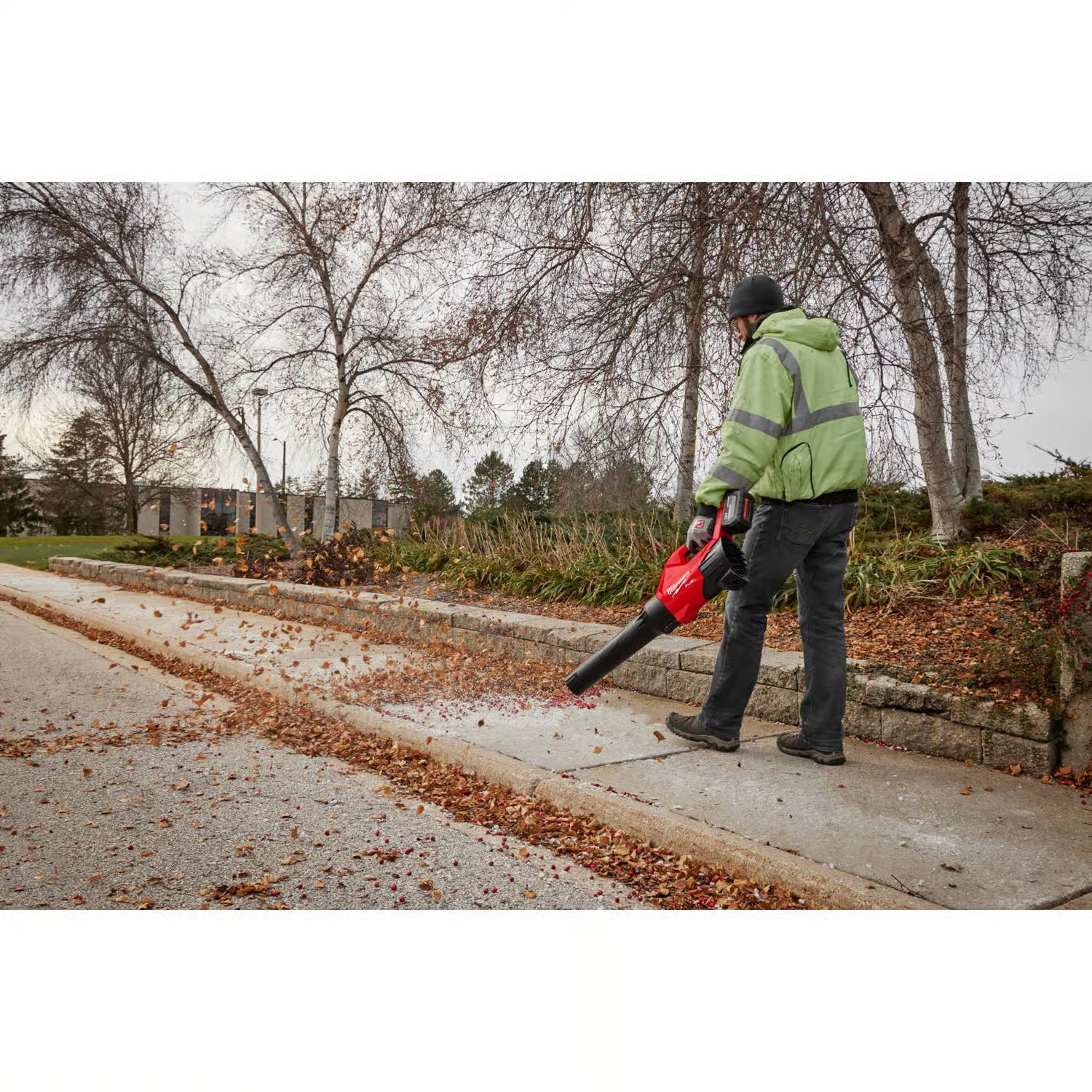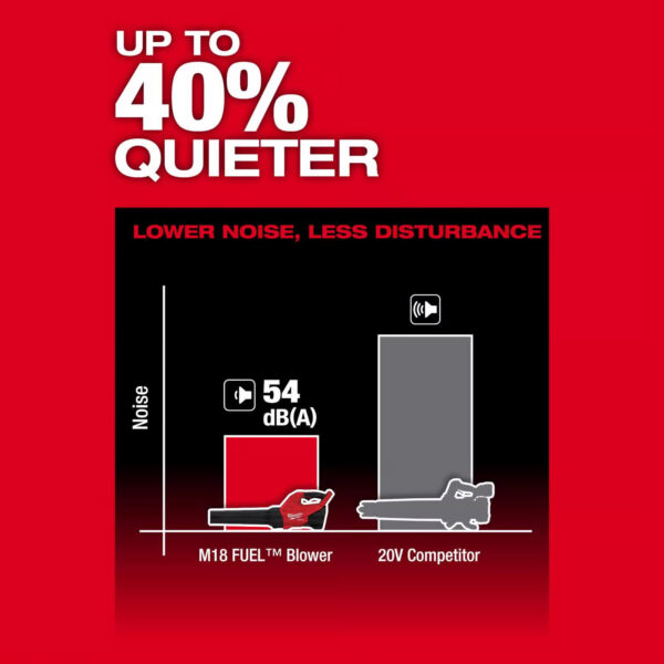 The Milwaukee M18 fuel blower is designed to meet the needs of the landscape maintenance professional in quick, routine cleanups. The Powerstate brushless motor delivers 500 CFM, 120 MPH, and 12.2 N providing users with higher constant power levels allowing users to clear more leaves, grass, and light debris, and reach full throttle in under one second. This cordless leaf blower has low noise level that is up to 40% quieter than the competition, allowing users to work comfortably and reducing disturbance to bystanders. Redlinkplus intelligence offers total system communication between the blower and battery for unmatched levels of performance, protection, and productivity. The lightweight, balanced design and ambidextrous variable speed sliding lock on the lever provides users with more clearing control. The M18 Redlithium high output HD12.0 battery pack – not included provides users with best-in-class power and run time. The M18 fuel blower is part of the M18 system.Fully compatible with the M18 system, featuring over 250+ toolsNo gas headaches no pull start, no engine maintenance, low noise, no emissions, less vibrationBlower is optimized for use with M18 Redlithium high output batteriesHighly durable and user-friendly