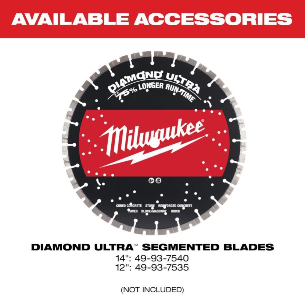 The MX FUEL™ 14” Cut-Off Saw delivers Instant Starts with Zero Emissions. Full 14” capacity gives you the ability to cut up to 5” depths in a large variety of materials. The POWERSTATE™ Brushless Motor delivers the power to cut through a wide range of tough materials from concrete to rebar and ductile iron. The MX FUEL™ REDLITHIUM™ battery pack provides 6 feet of full depth concrete cutting or 72 pieces of #5 rebar cut per charge. It delivers instant power with none of the gas headaches. This means fewer wearable parts, less noise and vibration, and zero emissions for a safer workspace indoors or outdoors. It is compatible with all MX FUEL™ REDLITHIUM™ batteries, the hardest working most reliable power for equipment. The push button activation eliminates the repetitive motions of a pull start and gives you the ability to cut materials faster from start to finish, reducing your downtime and allowing you to get jobs done faster. REDLINK PLUS™ Intelligence ensures optimal tool performance and provides overload protection to protect the machine and battery during the toughest applications. The MX FUEL™ 14” Cut-Off Saw is ONE-KEY™ Compatible: Track, manage and secure equipment from your mobile device or computer using the industry’s largest Bluetooth® community tracking network. If ever lost or stolen, prevent tampering with remote lockout capability.