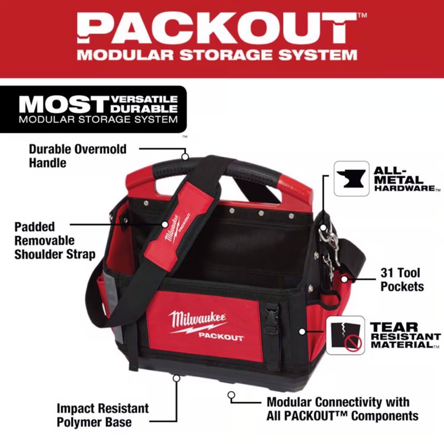 The Milwaukee Packout Modular Storage System is the most durable storage system. The Packout Back bag features an impact-resistant molded base that connects with all other Packout system components via integrated locking cleats. Milwaukee constructed the durable tool duffel bag with 1680d ballistic material and all-metal hardware so it can withstand harsh jobsite environments. The heavy duty backpack includes a hardshell pocket designed for sensitive equipment, providing with optmized storage capacity. The Packout modular storage allows for customize and build their tool storage to suit their needs.