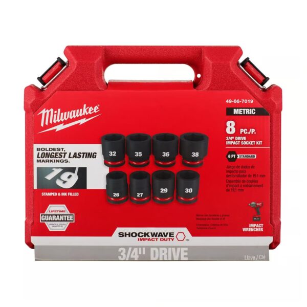 Milwaukee Shockwave 3/4 in. drive Metric 6 Point Standard Impact Rated Impact Socket Set 8 pc