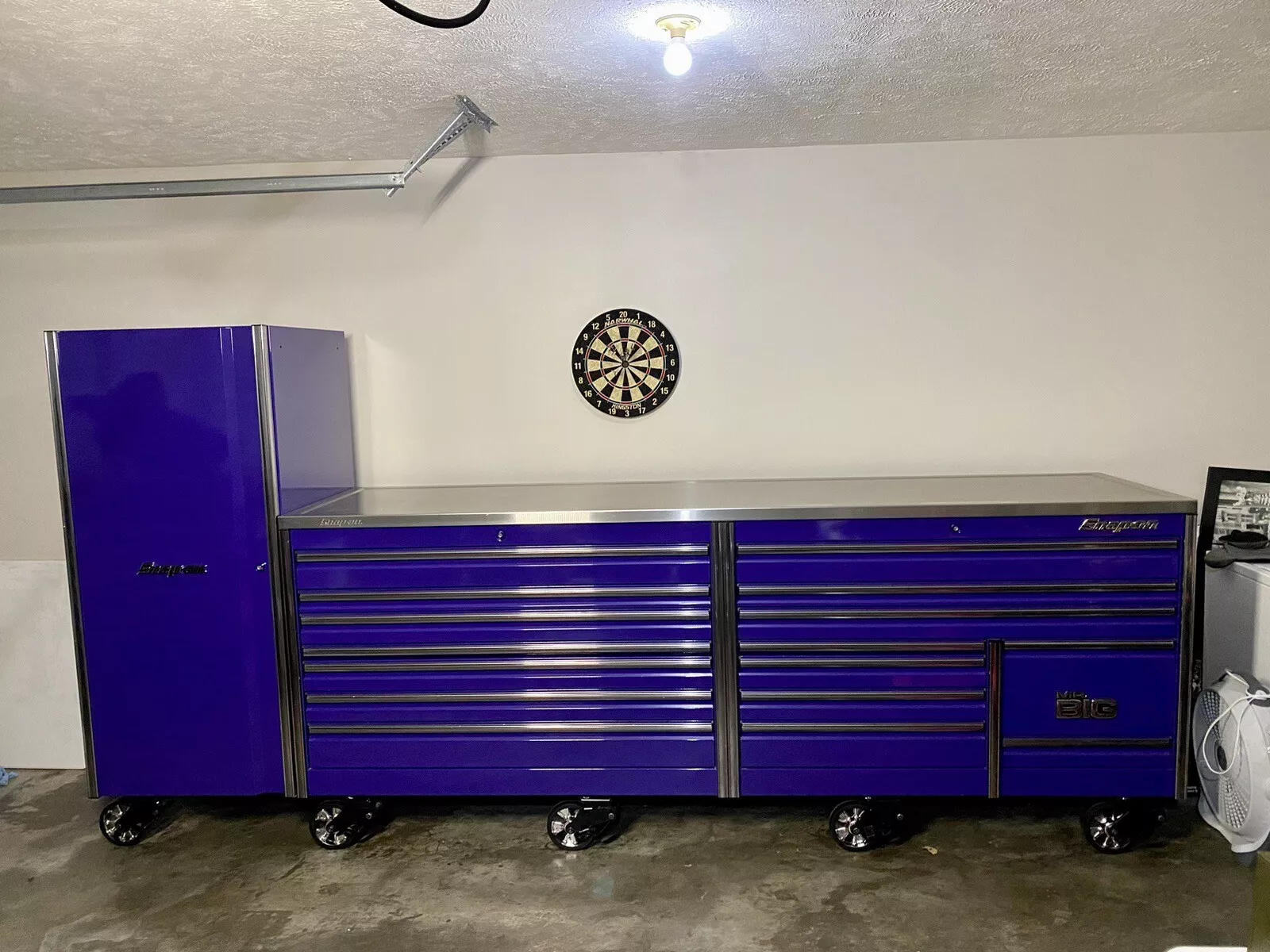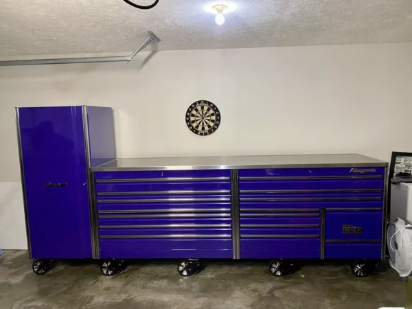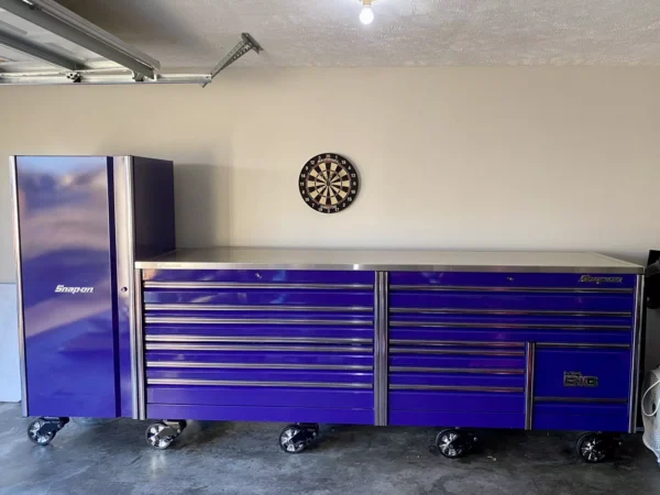 For sale is a Snap On EPIQ 120” long, 30” deep “Mr. Big” toolbox with a full length stainless steel work top and side locker