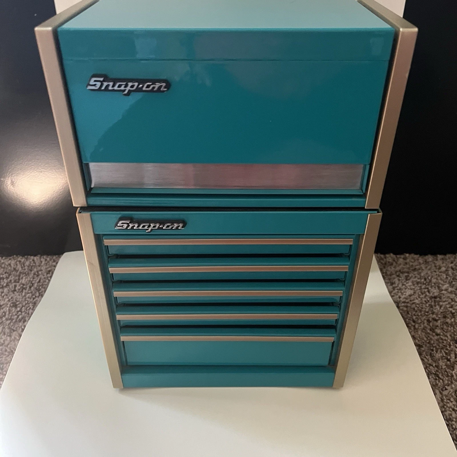 Snap On Mini Micro Tool Box TEAL Combo Rare Top Chest 2 piece w drawers