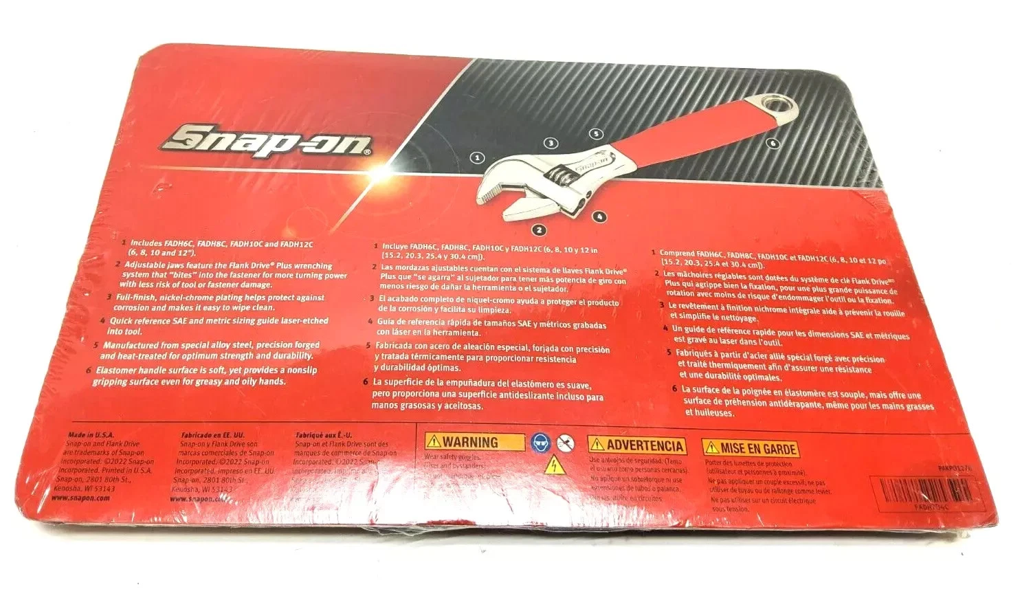 SNAP ON TOOLS USA 6″ 8″ 10″ 12″ Flank Dr Plus ORANGE Adjustable Wrench Set FADH704C O